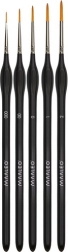Kiváló minőségű nylon sörték kiváló rugalmasságot biztosítanak, ideálisak akril-, akvarell- vagy gouache-festékekhez. Minden ecset szilárd réz hüvelyben végződik, amely nem csak esztétikailag mutatós, hanem véd a korrózió ellen és meghosszabbítja a termék élettartamát.