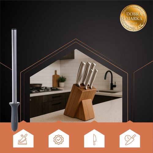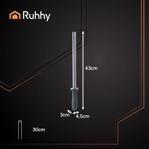 A gyémánt fenőacél RUHHY felbecsülhetetlen segítség a kések rendszeres élezéséhez, amely tökéletes állapotban tartja eszközeit. Ergonomikus fogantyúja és acélrúdja kényelmes és tartós használatot biztosít, így ideális a professzionális és otthoni konyhák számára is.