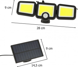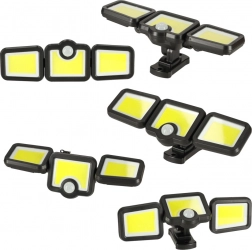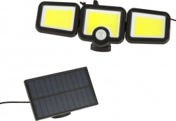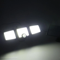 Nagy teljesítményű kültéri napelemes LED reflektor három állítható panellel, külön napelemmel és beépített PIR érzékelővel. Akár 320°-os széles világítási szöget, automatikus felkapcsolást sötétedés után és energiatakarékos, napenergiával működő üzemet biztosít. Ideális udvar, kert, bejárat vagy kocsibeálló megvilágítására, valamint a biztonság növelésére sötétedés után.