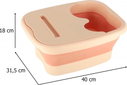 13 literes kapacitásával elegendő vizet tartalmaz a nyugtató lábfürdőhöz. A kád alján található kiemelkedések gyengéden masszírozzák a lábakat, miközben összecsukható szerkezete lehetővé teszi a könnyű tárolást.