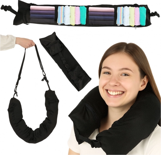 Ez az utazó párna ideális útitárs. Elülső kapcsos rögzítéssel van felszerelve, ami stabilitást és kényelmet biztosít használat közben. A belső nagy zseb gyakorlati tárolási megoldást nyújt személyes tárgyai számára. Két oldalsó cipzár biztosít könnyű hozzáférést mindkét oldalról, miközben a bal és a jobb oldali zsebek belül összekapcsolódnak.