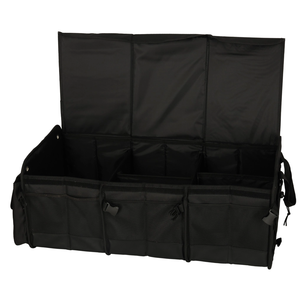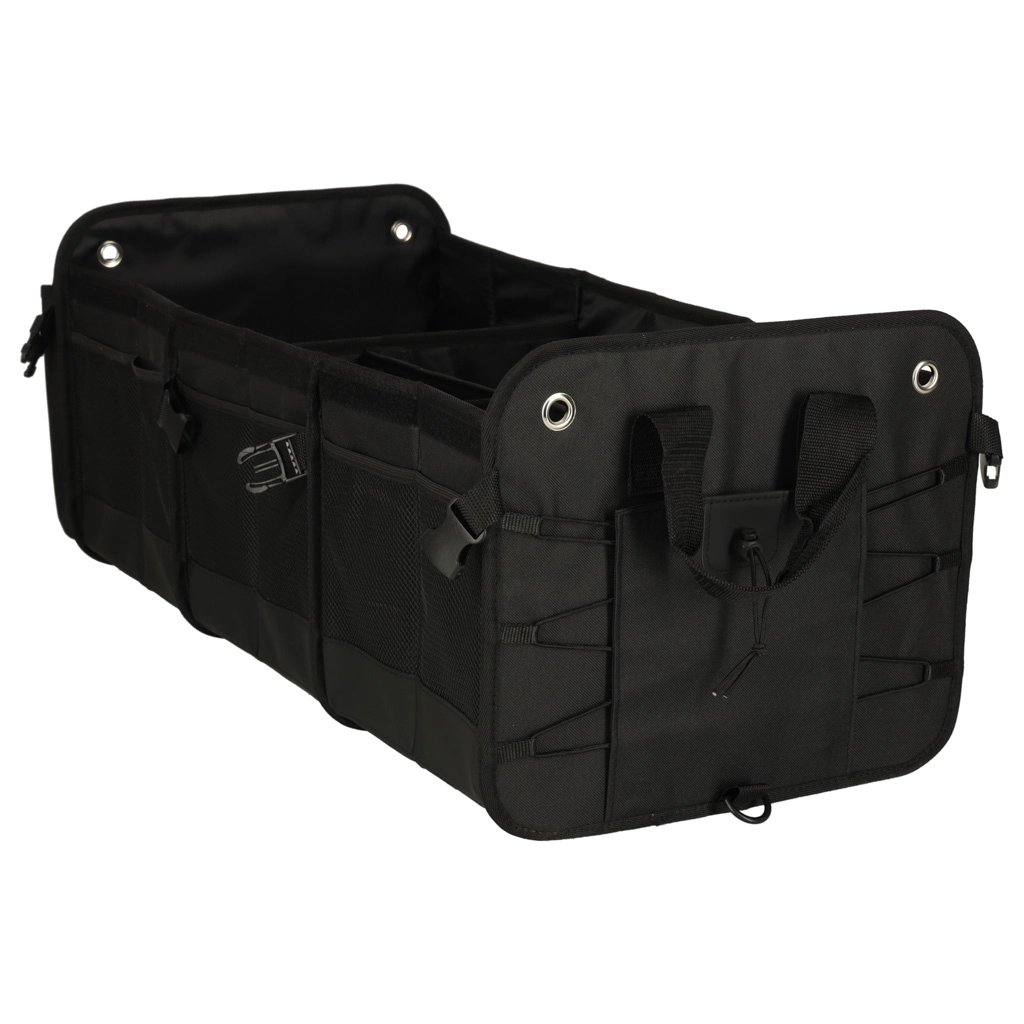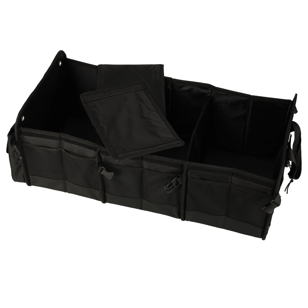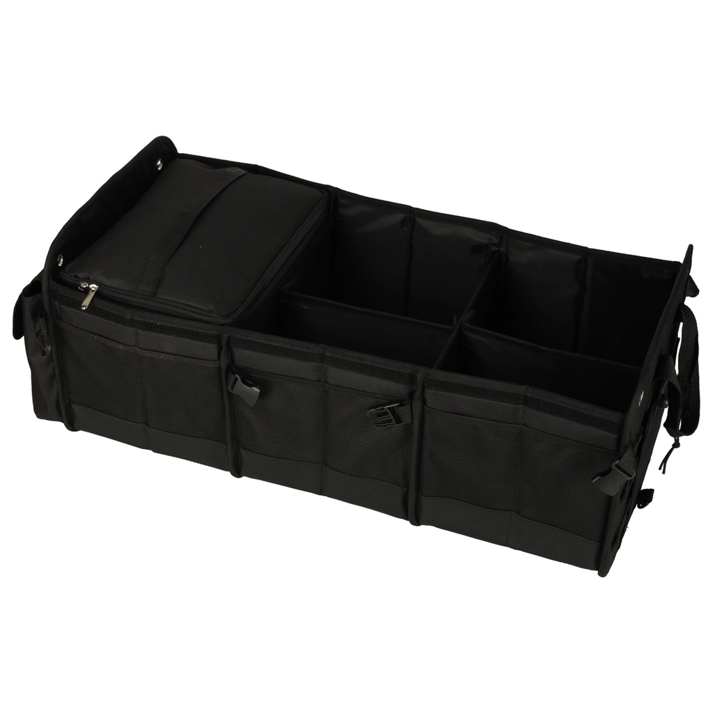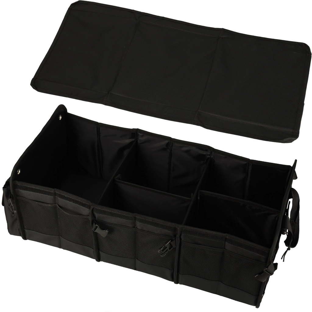 Ez az összecsukható szervező vízálló bevonatú, strapabíró 600D Oxford szövetből készül, védi a tartalmat a nedvességtől és szennyeződéstől, és segít, hogy vezetés közben minden a helyén maradjon. A része egy kivehető szigetelt termo táska hűtött élelmiszerek vagy italok szállításához.