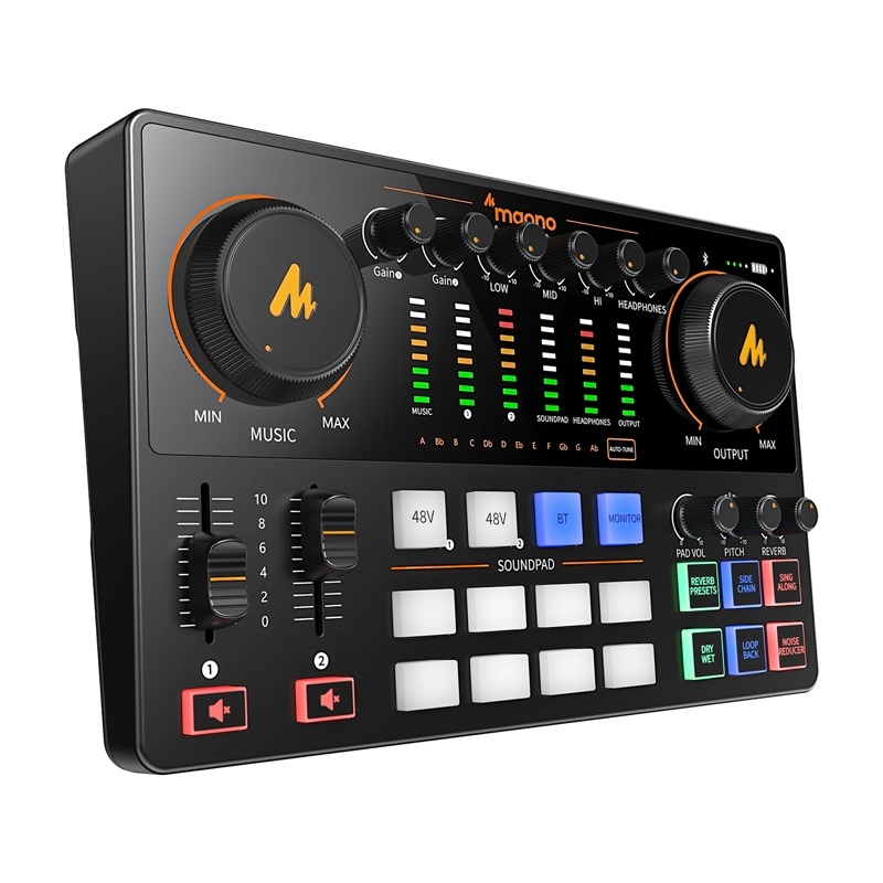 A Maono E2 Gen2 professzionális mikrofon áramköröket biztosít akár 60 dB erősítéssel, ami elegendő a legtöbb dinamikus és kondenzátor mikrofon számára. Minden csatorna rendelkezik saját hangerő-szabályozással és tápegységgel, amely nagyobb ellenőrzést biztosít különböző tartalmak rögzítése során.