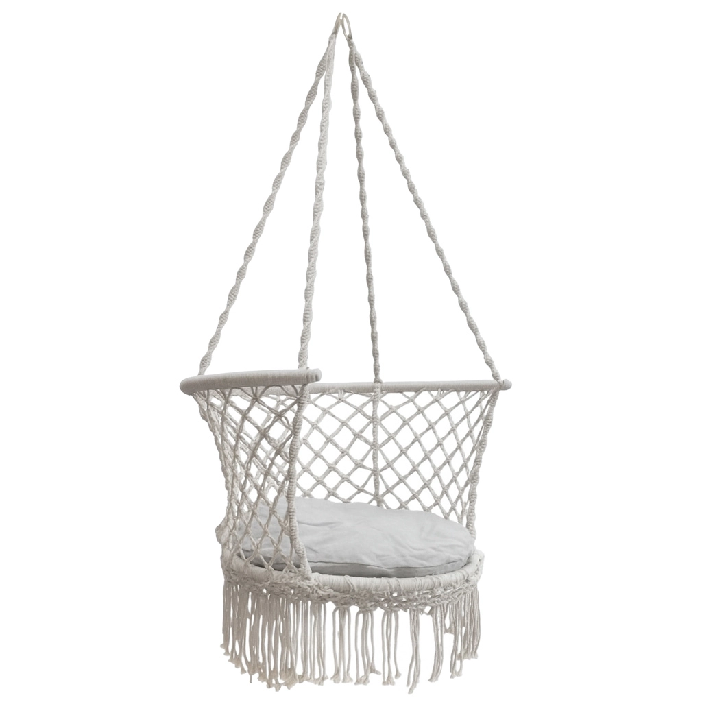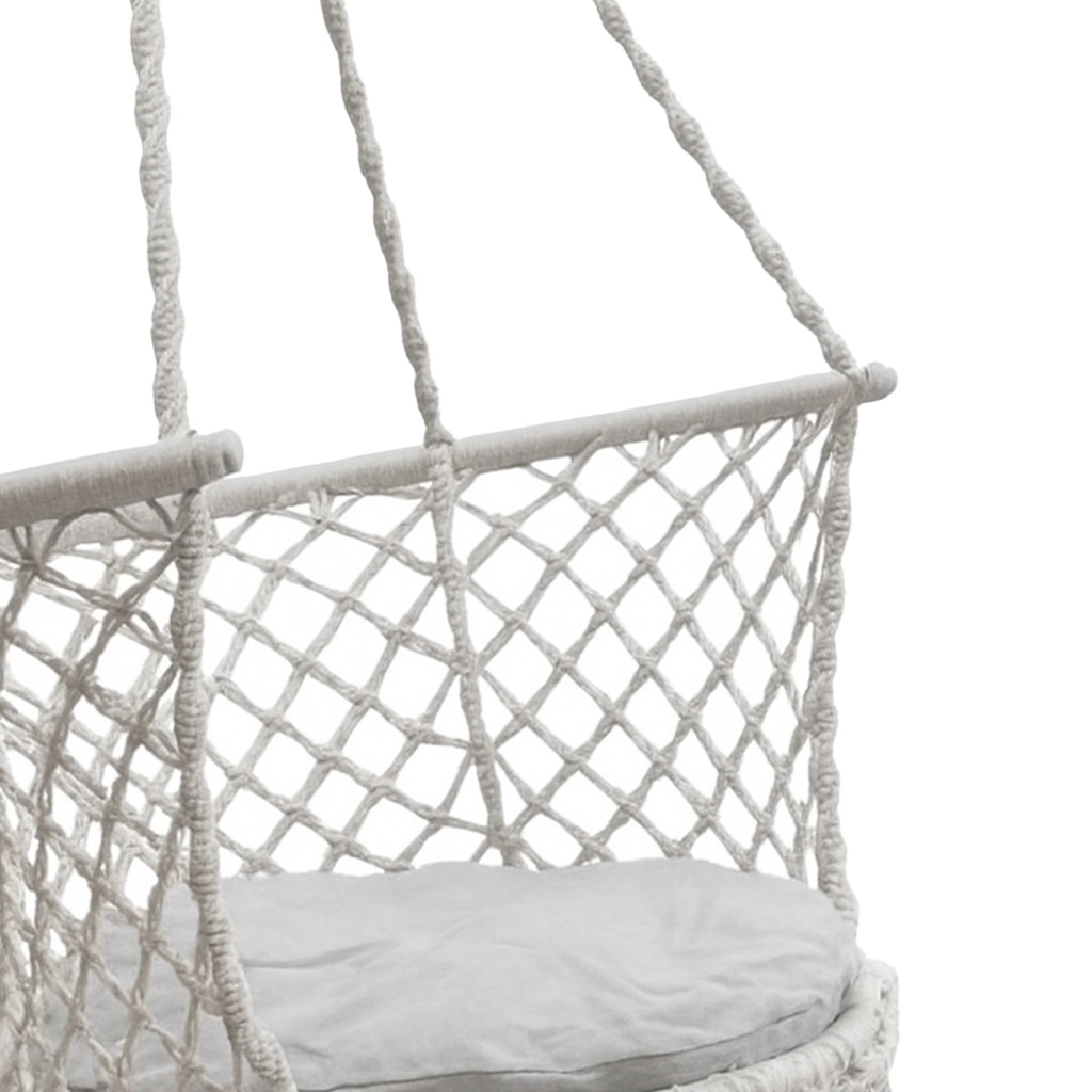 A szürke függőszék fészek alakú vázzal alakítja át a kertjét egy nyugodt pihenőhellyé. A csomag részeként szállított párna segítségével kényelmesen nekidőlhet a fém karikának. A hintaszék stabil, és lehetővé teszi az egyenes vagy törökülésben való kényelmes ülést.