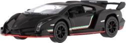 Élvezze a sebesség varázsát ezzel az autentikus Lamborghini Veneno autómodellel, amely fém- és műanyag elemek kombinációjával pontosan reprodukálja az ikonikus designt. 13 cm hosszúságával ideális nemcsak 3 évesnél idősebb gyerekek számára játékként, hanem gyűjtőknek is az autós világ rajongóinak.