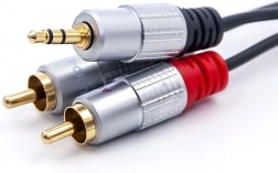 A Qoltec kábel 2x RCA - 3.5mm Jack lehetővé teszi a hangjel átvitelét okostelefon, MP3 lejátszó, számítógép és más RCA csatlakozós audio eszközök között. A aranyozott csatlakozók garantálják a kiváló hangminőséget és védelmet nyújtanak a korrózió ellen.