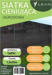 A szürke árnyékoló háló kiváló minőségű, UV sugárzásnak ellenálló polietilénből készül, ami biztosítja a színek és a forma tartósságát. A háló nem fakul és nem deformálódik a 140 g/m² súlynak köszönhetően, ami ellenállást nyújt különböző időjárási körülményekkel szemben.