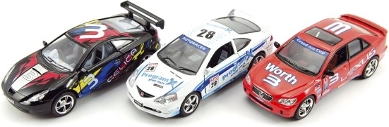 A fém és műanyag kombinációja tartósságot és élethű megjelenést biztosít. A versenymatricák, spoilerek és rajtszámok vonzó gyűjtői darabokká teszik az autókat.