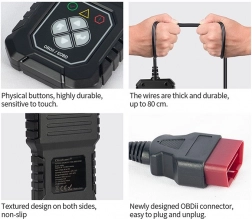 E készülék segítségével gyorsan ellenőrizheti és megoldhatja a problémákat, így elkerülheti a költséges szervizdiagnosztikát. A teszter hozzáférést biztosít az olyan járműinformációkhoz, mint a jármű azonosító száma (VIN), kalibrációs azonosító (ID), és kalibrációs ellenőrző szám (CVN).