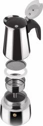 Ez a kávéfőző nyomás alatti termék, amely lehetővé teszi 6 csésze eszpresszó elkészítését. Alkalmas minden típusú főzőlaphoz: