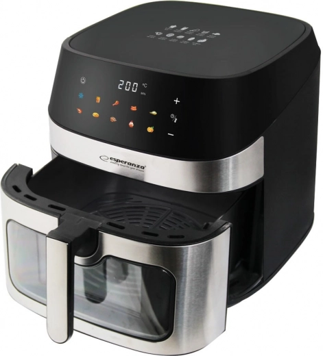 A nagy ablak lehetővé teszi az ételek elkészítési folyamatának könnyű ellenőrzését. A hőmérséklet-szabályozás és időzítő különböző sütési időket biztosítanak. A gumitalpak stabilitást biztosítanak munka közben, a modern dizájn pedig tökéletesen illeszkedik bármely konyhába.