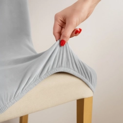 RUHHY székhuzatok elegáns világos szürke kivitelben nemcsak védelmet nyújtanak, hanem modern megjelenést is kölcsönöznek székeinek. Készült puha és rugalmas velúrból, amely tökéletesen illeszkedik a szék formájához.