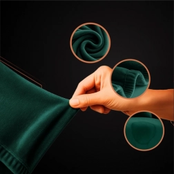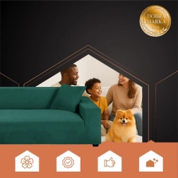 Kanapévédő és felfrissítő, RUHHY márkájú huzat zöld színben, puha és rugalmas velúrból. Stabilan tartja a pozíciót, könnyen alkalmazkodik a kanapéhoz, és elegáns megjelenést kölcsönöz a belső térnek.