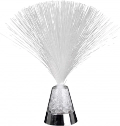 Finom és egyenletes fény kellemes relaxációs és nyugodt légkört teremt. A lámpa stabil alapon áll, átlátszó anyaggal, amely jégkristályokat imitál, elegáns krómozott kivitelben. A rugalmas optikai szálak legyező alakban terülnek el, és végük finoman csillog különböző színekben.