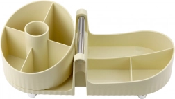 Ez a rendszerező praktikus fogantyúval rendelkezik a könnyű szállítás érdekében. Helytakarékos, de közben elfér benne minden szükséges kozmetikai vagy irodai tárgy. Modern és minimalista kialakítása jól illeszkedik különféle belső terekhez - a sminkasztaltól az otthoni irodai íróasztalig.