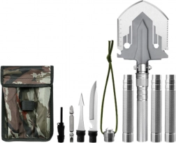Az összecsukható katonai lapát magas minőségű acélból készül, és moduláris nyele tartós alumínium ötvözetből készült, amely kényelmes fogást biztosít, és önvédelmi eszközként is szolgálhat. A lapát három kb. 17 cm-es szegmensből áll, így összecsukva nagyon kevés helyet foglal el – csak 25 cm a hossza. Kinyitva a hossza akár 68 cm is lehet, ami kényelmes és ergonomikus munkavégzést biztosít.