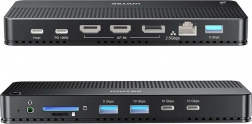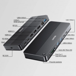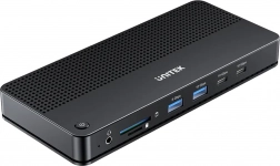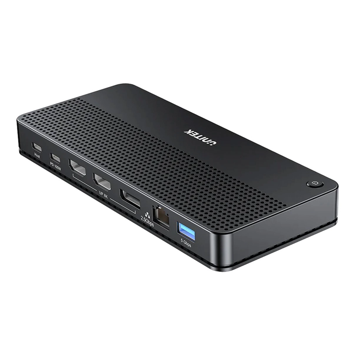 Élvezze az Unitek dokkoló állomás nyújtotta egyszerűséget és teljesítményt, amely lehetővé teszi az összes szükséges periféria egyidejű csatlakoztatását. SD és Micro SD kártya slotok, három video port (2x HDMI és 1x DisplayPort), három USB-A és kettő USB-C port, RJ-45 Ethernet akár 2,5 Gbps átviteli sebességgel – mindez egy elegáns eszközben.