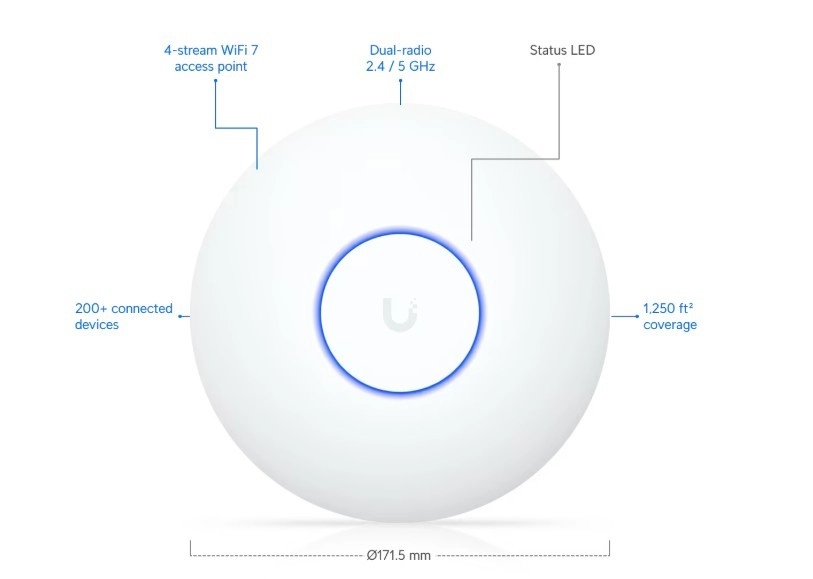 A U7-Lite hozzáférési pontot úgy tervezték, hogy nagysebességű és stabil vezeték nélküli kapcsolatot biztosítson. A WiFi 7 technológiával kínál: