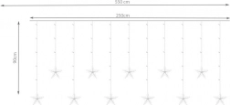 A csillagokkal díszített fényfüggöny ideális dekoráció minden alkalomra. A LED diódáknak köszönhetően kevesebb energiát fogyaszt, nem bocsát ki hőt és akár 35 000 órán át is tart.