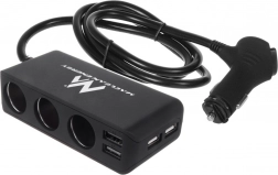 A Maclean márka praktikus elosztója ideális megoldás mindazok számára, akik több eszközt szeretnének tölteni vezetés közben. Elegáns kialakítás és gumírozott felület fekete színben minden autó belső teréhez illik. 3 szivargyújtó aljzatot és 2 USB portot kínál összesen 4.8A kimenettel.