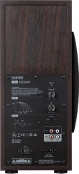 Az 18 mm-es MDF-ből készült tartós konstrukció minimalizálja a rezonanciát, míg a barna fa felület esztétikus megjelenést biztosít. Az RCA bemenetek és kimenetek széles kompatibilitást biztosítanak más eszközökkel.