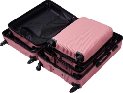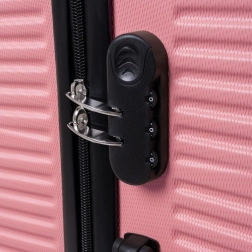 A belső tér rendezett, káoszmentes pakolást tesz lehetővé – osztott rekeszek, cipzáras zseb és kereszt elasztikus pántok tartják helyükön a holmikat. A biztonságról számzár gondoskodik kulcs nélkül. A szett három méretet tartalmaz (kicsi, közepes, nagy), amelyeket praktikusan egymásba csúsztathat a helytakarékos tároláshoz.