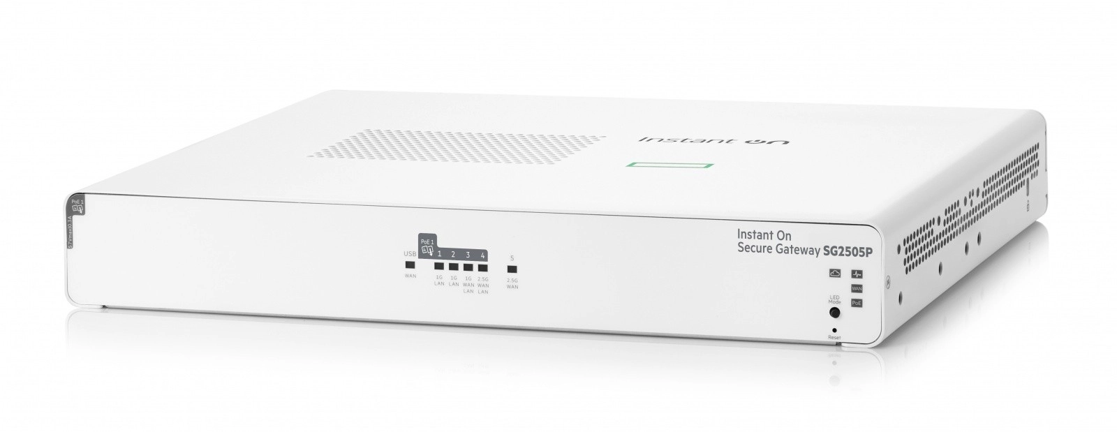 Az HPE Networking Instant On Secure Gateway kifejezetten a kisebb vállalkozások szegmensére lett tervezve, és 24/7 hálózat monitorozást, IDS/IPS motort és domain blokkolást kínál a védelem növelése érdekében. A hardveres gyorsításnak köszönhetően képes szinte vonali átviteli sebességet biztosítani ezen funkciók aktiválása mellett.
