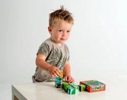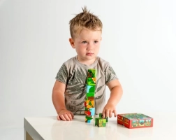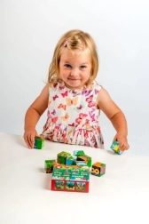 Fa kockák színes állatképekkel, ideálisak a legkisebb gyermekek számára. Segítik a logikus gondolkodás, a képzelőerő és a finommotorika fejlesztését.