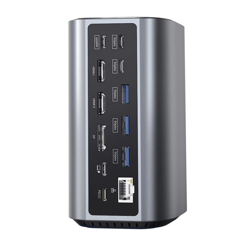 - 2 * HD, 1 * DiP, 4 * USB-C, 3 * USB 3.0, 1 * USB 3.1, 1 * USB-C 3.2 Gen2 HOST számára, 1 * USB-C PD, 1 * RJ45, 1 * Micro SD 4.0, 1 * SD 4.0, 1 * 3,5mm Audio