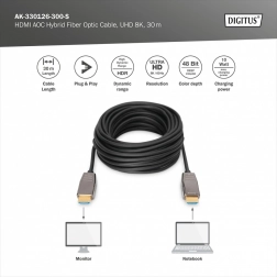 Az aktív hibrid HDMI AOC kábel ideális otthoni, konferenciatermi és épületekben való használatra. Kis átmérője és alacsony tömege miatt könnyen telepíthető, és nulla késleltetéssel továbbítja a jelet.