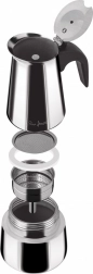 Ez a kávéfőző hagyományos olasz kávékészítéshez tervezett, és magas minőségű (18/10-es) rozsdamentes acélból készült.