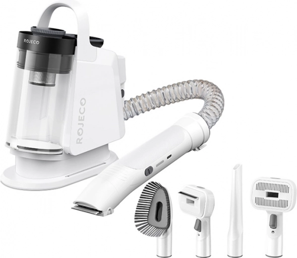 Ez a multifunkciós Rojeco gép átfogó ápolást nyújt a háziállatok szőrzetének a porszívó és cserélhető fejek kombinációjával: