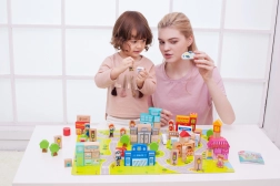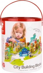 A készlettel a gyerekek tipikus városi épületeket építhetnek, mint például iskola, rendőrörs, tűzoltóság, repülőtér, kórház, bank, étterem, állatkereskedés és további épületek. A játék természetes, biológiailag lebomló és hipoallergén anyagokból készült, ami maximális biztonságot nyújt.