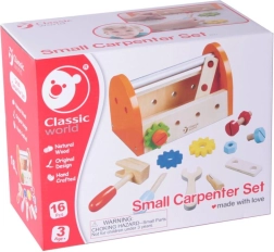 Kreatív fa szerszámkészlet kis szerelőknek, amely 16 darab masszív szerszámot tartalmaz egy praktikus fa dobozban. Fejleszti a finommotorikát, a műszaki megértést és a kézügyességet. Minőségi fából készült, 3 éves kortól ajánlott.