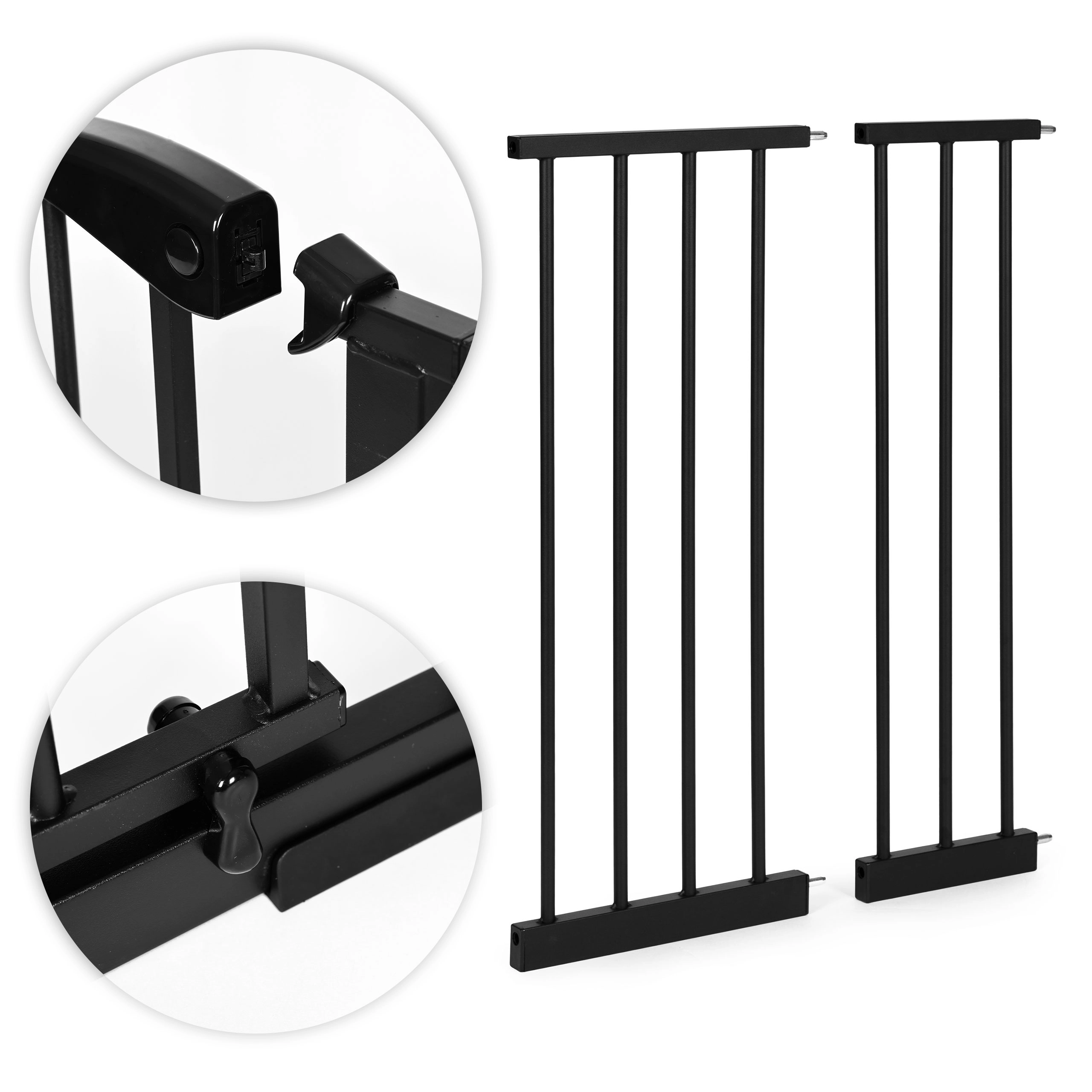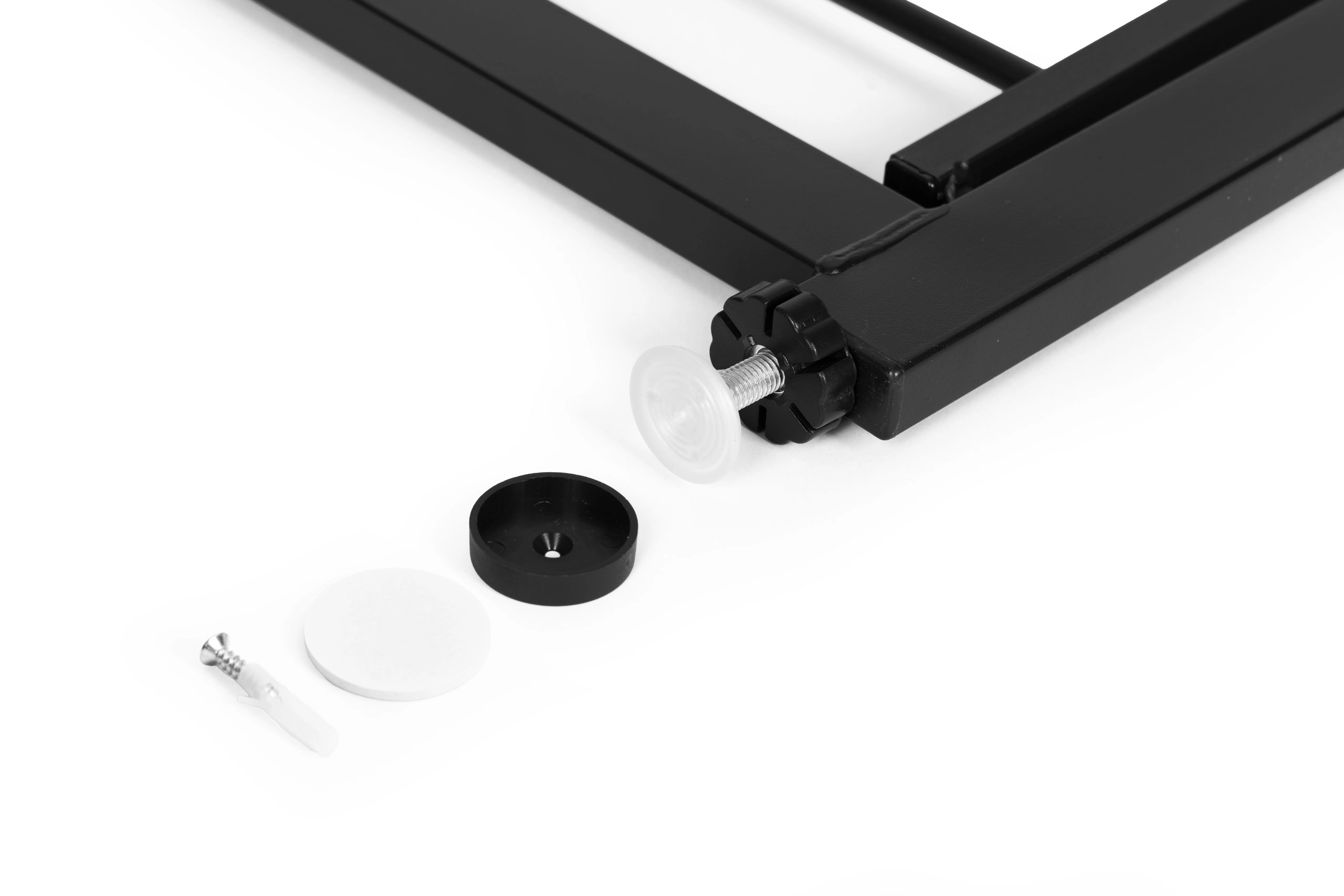 Könnyű telepítés fúrás nélküli, 4-pontos nyomórögzítési rendszerrel, amely erősen tartja a korlátot a helyén anélkül, hogy kárt tenne a falakon vagy kereteken. Ha tartós rögzítést részesít előnyben, használhatja a mellékelt speciálisan formázott alátéteket és csavarokat.
