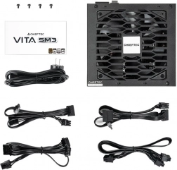 CHIEFTEC VITA series megbízható tápegységet kínál 80 PLUS Bronze minősítéssel, Intel ATX 3.1 és PCIe GEN 5 támogatással. Félmoduláris dizájn és csendes 120 mm-es ventilátor biztosítja a hatékony hűtést és könnyű csatlakoztatást.
