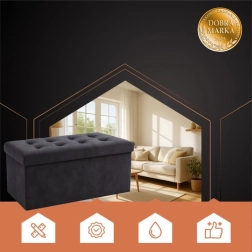 Okos megoldást keres üléshez és rendszerezéshez? Ez az összecsukható, tárolóval ellátott puff a kényelmet, a stílust és a funkcionalitást ötvözi. A kellemes tapintású velúr kárpit strapabíró és könnyen tisztítható, a puha habpárnázású fedél pedig kényelmes ülőhelyet biztosít egy vagy két személy számára.