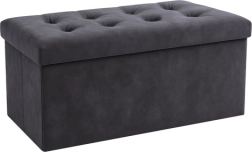 A 110 literes űrtartalomnak köszönhetően mindent elrejthet a takaróktól a szezonális kiegészítőkig. Az MDF merevítéssel ellátott konstrukció stabil, mégis a puff másodpercek alatt laposra hajtható, így helyet takaríthat meg. A semleges szürke szín modern és klasszikus enteriőrökbe egyaránt illik.