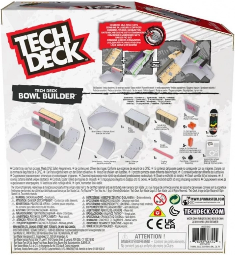 Állíts össze különféle kombinációkat a saját gördeszkaparkodból rámpákkal, korlátokkal és különböző akadályokkal. Tanulj új trükköket az exkluzív fingerboarddal. A csomag tartalma: 1 Tech Deck fingerboard, 1 bowl rámpa, 1 kis rámpa, 1 rámpa, 1 kis box, 1 box, 1 panel, 1 Tech Deck panel, 1 coping, 9 X-csatlakozó, 5 nagy X-csatlakozó, 9 láb, használati útmutató. 6 éves kortól ajánlott.
