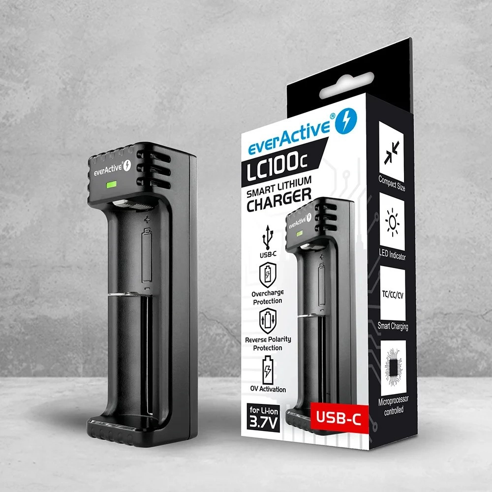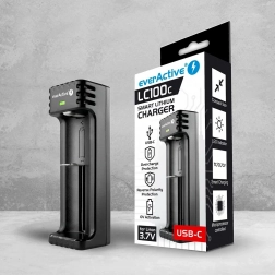 Az EverActive LC100C töltő megbízható és egyszerű eszköz egyetlen akkumulátor töltéséhez. Mikroprocesszorral van felszerelve a töltési folyamat irányításához, és nagy töltőáramot kínál, akár 1000 mA-t is.