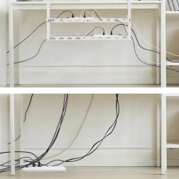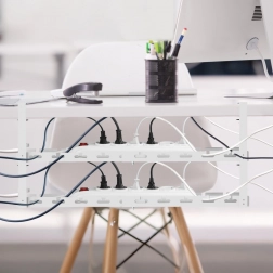 A kábelrendezőnek két szintű tartója van, amelyek lehetővé teszik két tápcsatlakozó vagy egyéb eszköz, mint adapterek, USB hubok vagy routerek egyidejű rögzítését. Bilincses rögzítő rendszer lehetővé teszi a gyors és nem invazív telepítést fúrás vagy a bútor felületének megzavarása nélkül.