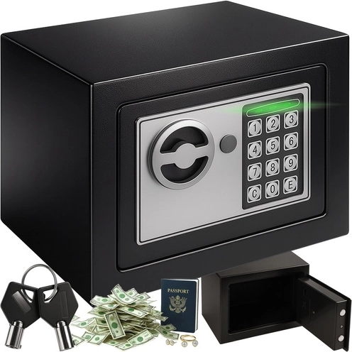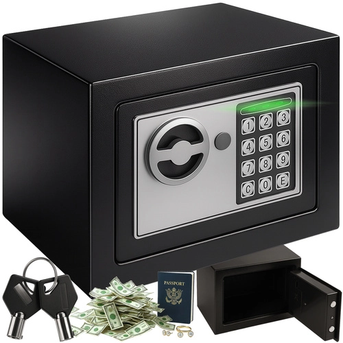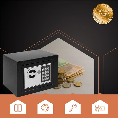 A nagyobb biztonság érdekében a széf hang- és fényjelzéssel, valamint három hibás próbálkozás utáni automatikus zárral van ellátva. A tápellátást széles körben elérhető AA elemek biztosítják, a telepítés egyszerű, és a csomag tartalmazza a szerelési kiegészítőket is.