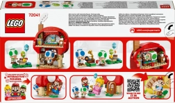 Rendezz vidám bulit Toadnál a játékos LEGO Super Mario szettel. Toad háza konyhával és hálószobával, levehető bútorokkal és kültéri piknikasztallal, kiegészítve két figurával: Blue Toad és Green Toad. Találsz benne lemezjátszót akcióelemmel, amely az interaktív figurákkal összekapcsolva zenét indít, valamint ajtócsengőt még több mókáért. Ideális ajándék 7 éves kortól és minden SUPER MARIO rajongónak.