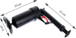Ez az univerzális, nyomásos lefolyótisztító hatékony megoldás a háztartásban előforduló dugulásokra. A sűrített levegő segítségével biztonságosan feloldja a makacs lerakódásokat is a csövek károsítása nélkül. Ergonomikus fogantyúja és a könnyű pumpálás kényelmes kezelést biztosít különösebb fizikai erőkifejtés nélkül.