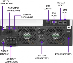 - Kommunikációs port BMS-hez (RS485, CAN-BUS, Rs232)