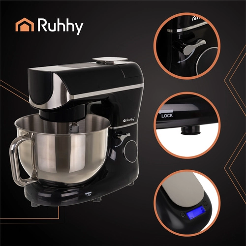 Fedezze fel az intelligens RUHHY konyhai robotgépet, amely egyesíti a keverést, dagasztást, habverést, melegítést és mérlegelést egyetlen készülékben. A fűthető tál (25–45 °C) révén a tészták gyorsabban és egyenletesebben kelnek, az integrált mérleg, a időzítő és a 11 fokozat pedig pontos eredményt biztosít találgatás nélkül. A nagy digitális kijelző, a csendes működés (76 dB) és a mosogatógépben mosható tartozékok megbízható segítővé teszik a mindennapi sütéshez és főzéshez.