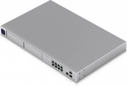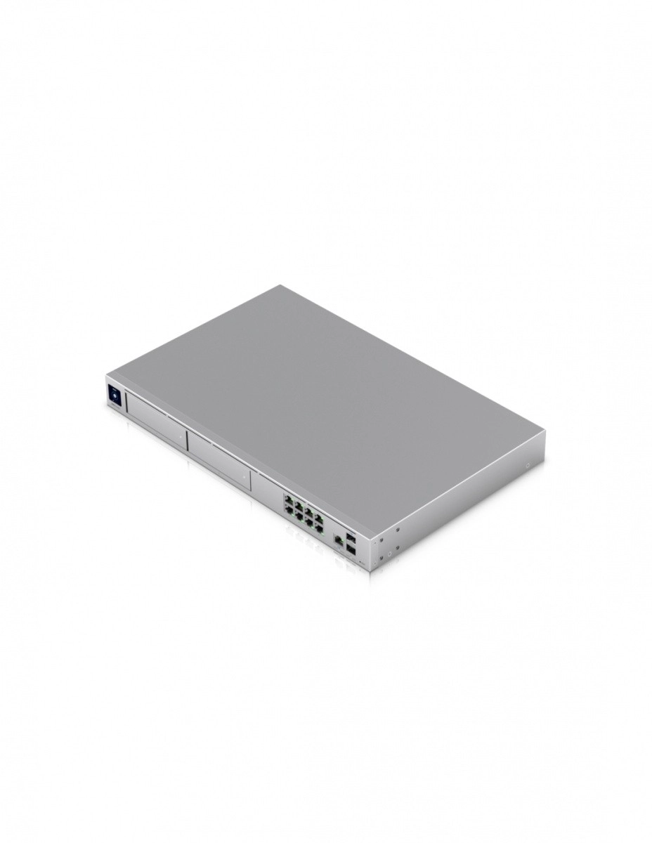 Az eszköz tartalmazza a teljes UniFi alkalmazáscsomagot a hálózat, a biztonság és a felügyelet egységes kezeléséhez. A csatlakoztathatóságról 10G SFP+ portok, 8× GbE LAN RJ45 és 2,5 GbE RJ45 WAN gondoskodik. A beépített 1,3" érintőkijelző megkönnyíti a monitorozást és az alapvető kezelést közvetlenül az eszközön.