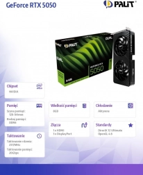 A Dual modell modern 8 GB GDDR6 memóriát és 128 bites memóriabuszt használ a gördülékeny, nagy felbontású játékhoz. A kompakt, 2 slotos kialakítás megkönnyíti a szerelést kisebb házakba is, kompromisszumok nélkül hűtésben vagy zajszintben. A Palit Maker támogatás továbbá lehetővé teszi a burkolat személyre szabását garanciavesztés nélkül.