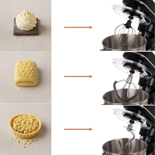 A csomagban 3 tartozékot talál (dagasztóhorog, lapát, ballonhabverő) a feladatok széles skálájához – a nehéz kelt tésztáktól a légies krémekig és tojáshabokig. A csúszásmentes lábak stabilitást biztosítanak, a kiválasztott alkatrészek mosogatógépben moshatók, a receptekkel ellátott QR-kód pedig új ötletekre inspirál a konyhában.