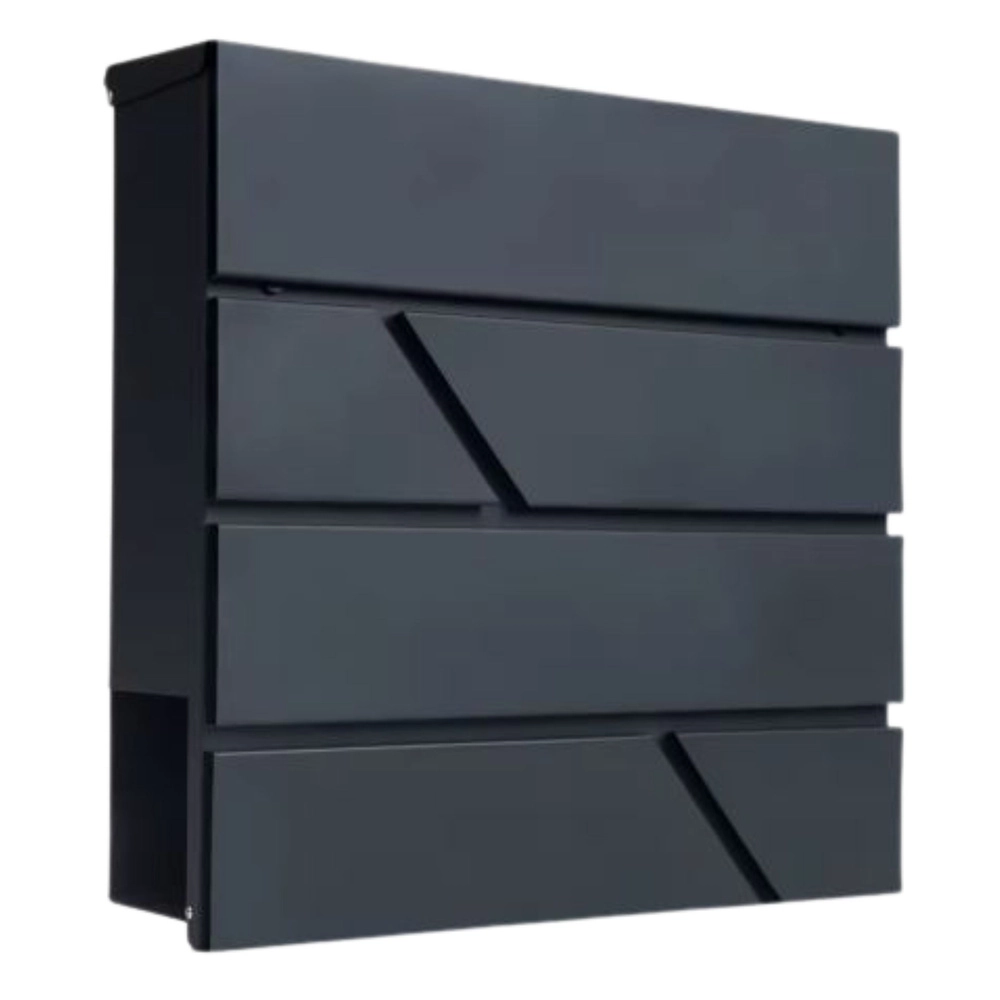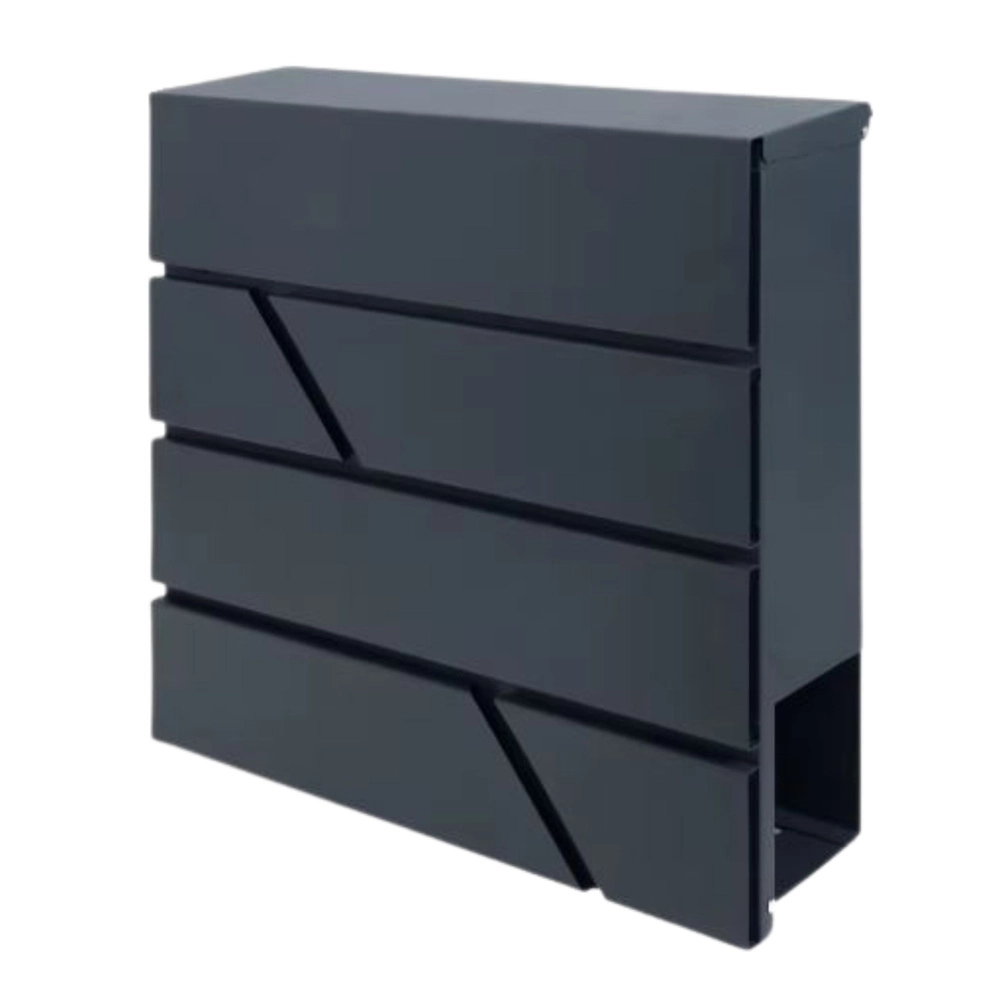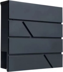 Ez a nagy postaláda a funkcionalitást időtálló megjelenéssel ötvözi. Porszórt horganyzott acélból készül, ami magas fokú korrózió-, eső- és kopásállóságot biztosít. A geometrikus kivágások modern karaktert adnak, és könnyen illeszkednek különféle homlokzati stílusokhoz.